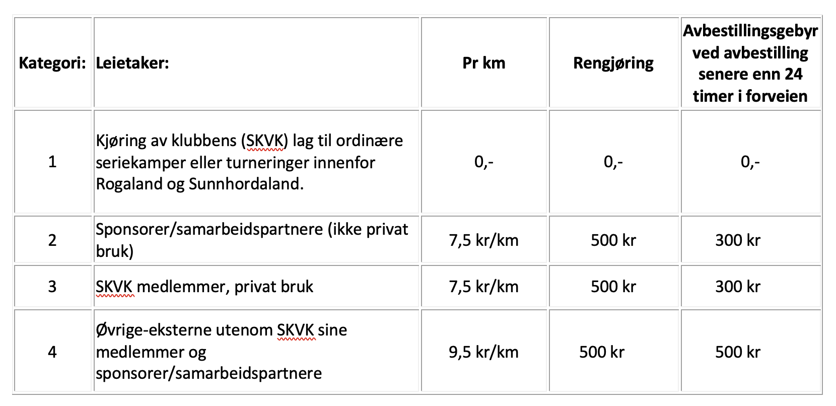 - Klubben dekker kjøring av klubbens lag til ordinære seriekamper innenfor Rogaland og Sunnhordland. (ikke privat bruk).
